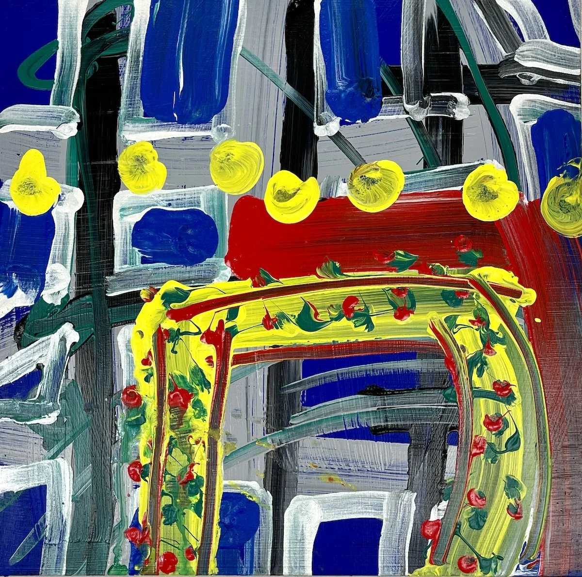 Mr. Lewis' works fall into the broad class of abstract expressionism having an organic look and improvisational qualities. Reactions to such art will be based on an observer's peculiar background. This is visual jazz.